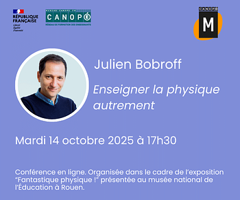 Lors de cette conférence en ligne, proposée par le Musée National de l'Education et Réseau Canopé Normandie, dans le cadre de l'exposition "Fantastique Physique ! ", actuellement au MUNAE, il développera 5 pistes de réponse : par le frugal, par la fiction, par le jeu, en sortant dehors et avec des designers.