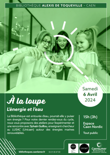 Pour notre dernier rendez-vous du cycle, nous vous proposons des ateliers pour l’expérimenter et une rencontre avec Sylvain Guillou, enseignant-chercheur au LUSAC (Unicaen) autour des énergies marines renouvelables.