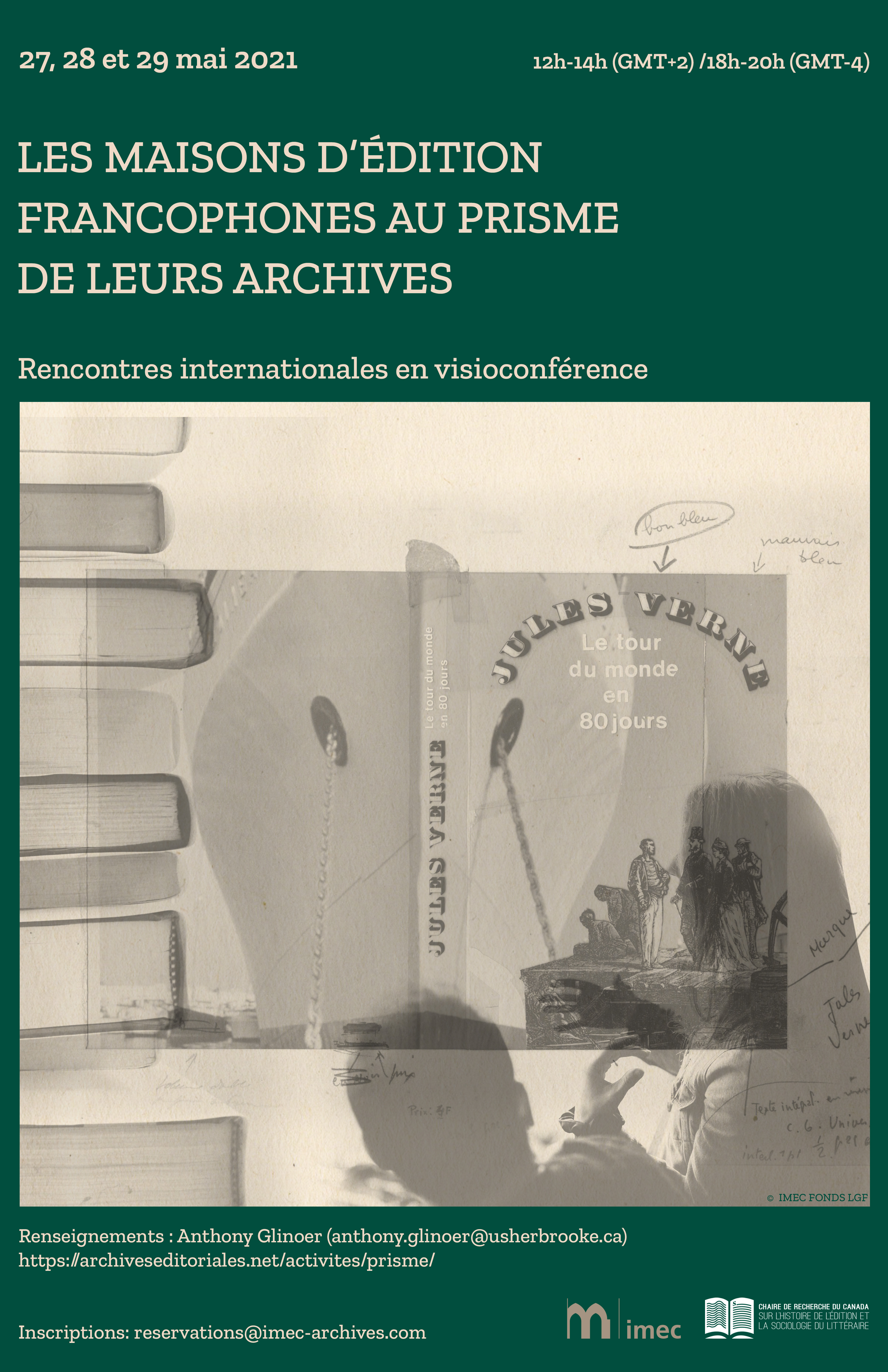Initialement prévues pour un colloque international à l’IMEC, ces rencontres en visioconférence prennent place dans le cadre d’un projet de recherche porté par l’Université de Sherbrooke en partenariat entre des institutions belges, françaises, canadiennes et suisses. On trouvera des informations sur ce projet dont l’IMEC est partenaire à l’adresse https://archiveseditoriales.net/