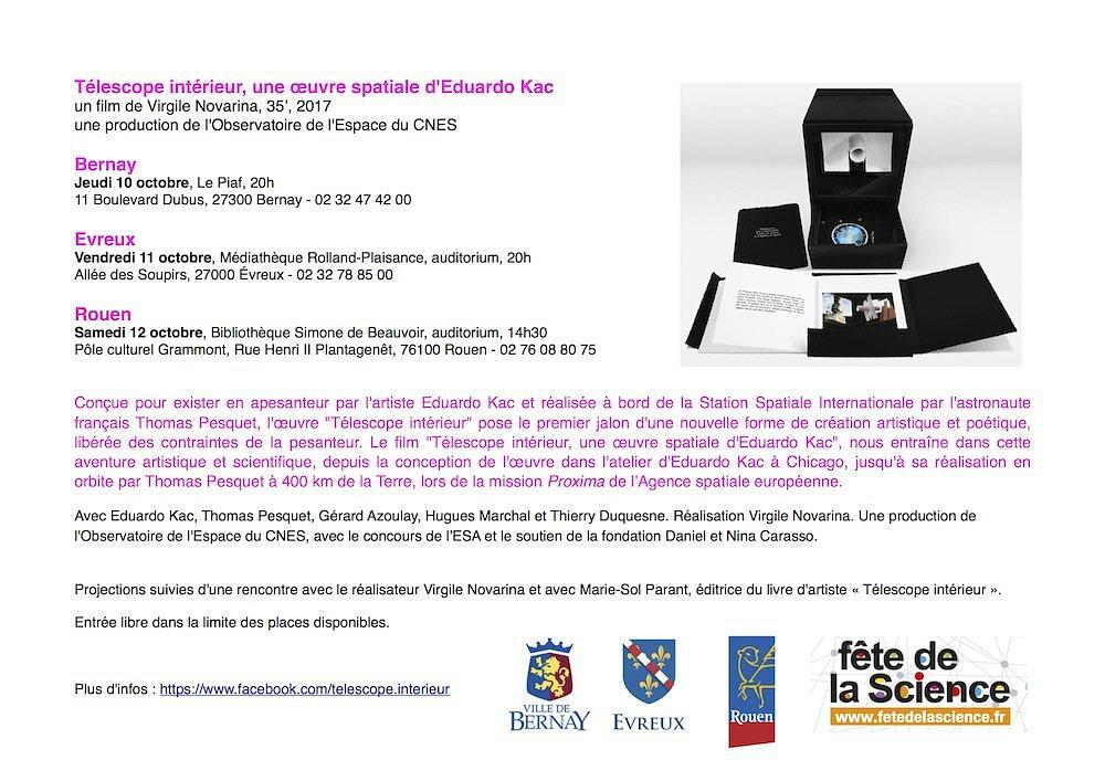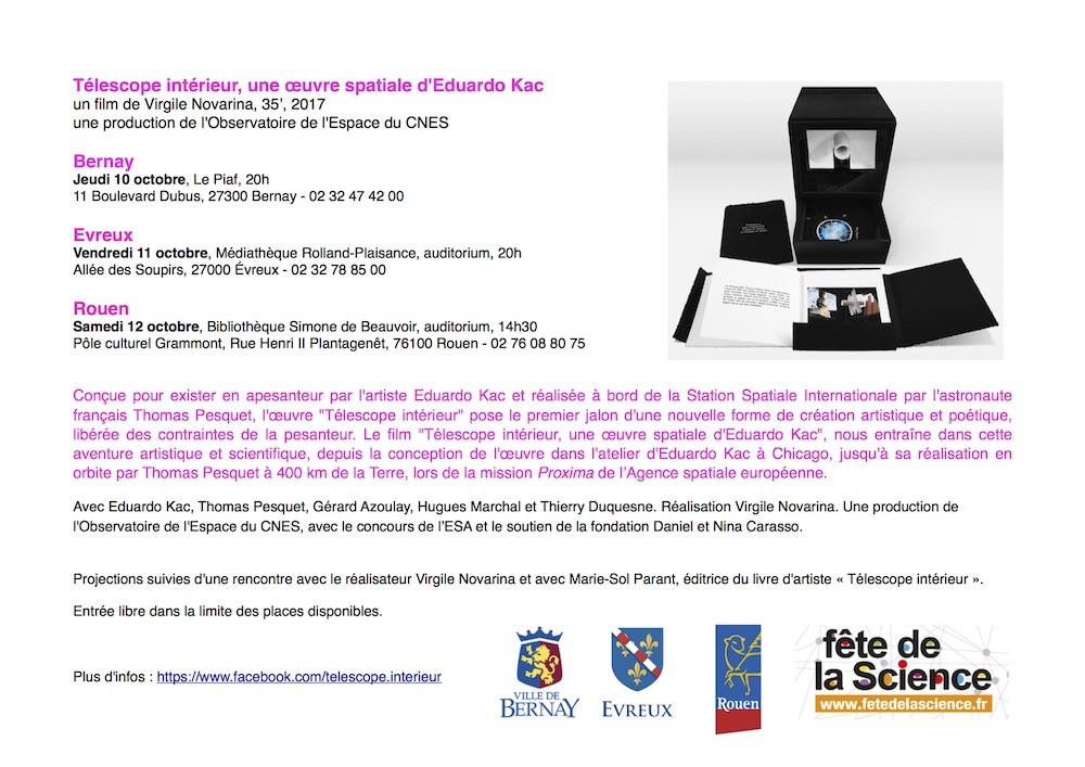 projection-rencontre du film documentaire "Télescope intérieur, une œuvre spatiale d'Eduardo Kac"