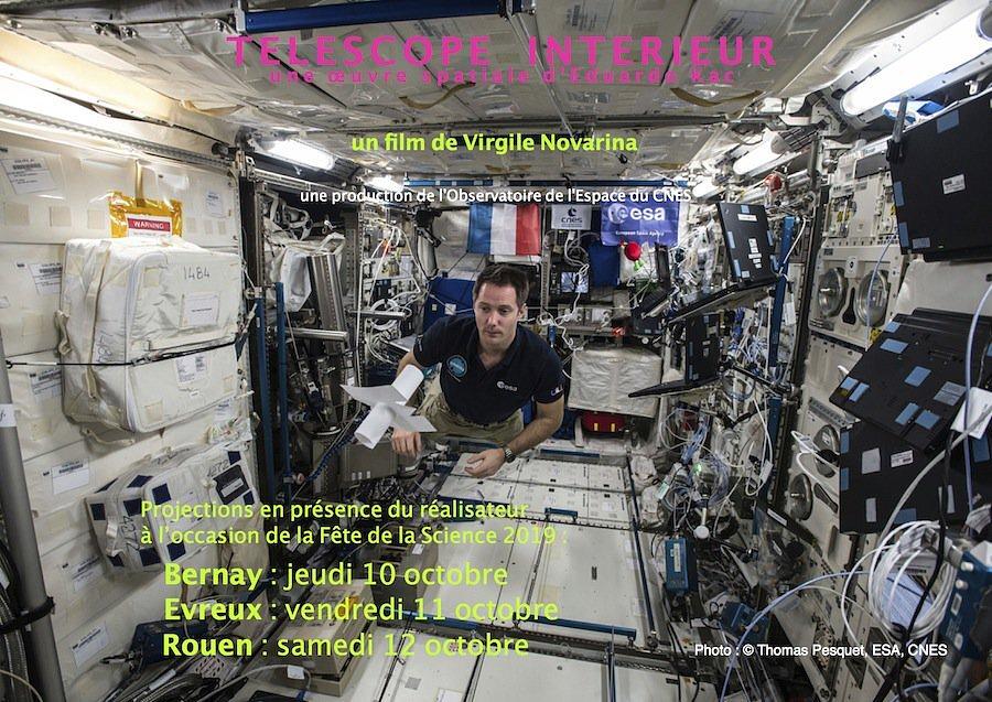 Conçue pour exister en apesanteur par l'artiste Eduardo Kac et réalisée à bord de la Station Spatiale Internationale par l'astronaute français Thomas Pesquet, l’œuvre "Télescope intérieur" pose le premier jalon d'une nouvelle forme de création artistique et poétique, libérée des contraintes de la pesanteur. Le film "Télescope intérieur, une œuvre spatiale d'Eduardo Kac", nous entraîne dans cette aventure artistique et scientifique, depuis la conception de l’œuvre dans l'atelier d'Eduardo Kac à Chicago,