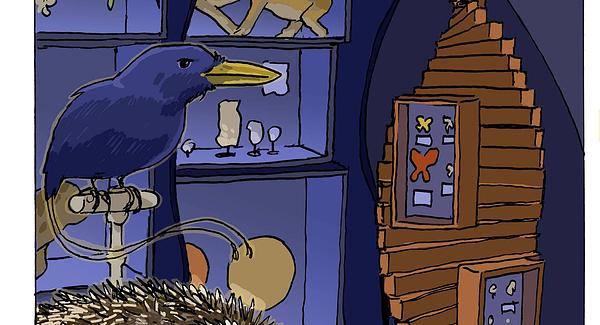 Un cube est délimité à minima par de légères baguettes. Il est au centre de la pièce, bien éclairé par un vidéoprojecteur. Plusieurs instruments scientifiques simples sont disposés sur une table.