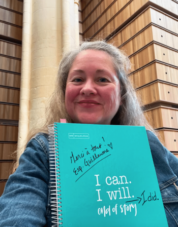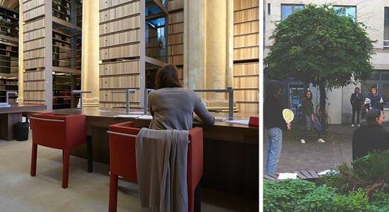 Photo Amy Wells dans la salle de lecture de l'Imec l'abbaye d'Ardenne commençant son dossier d'HDR, le 25 octobre 2024. Crédit Amy Wells.