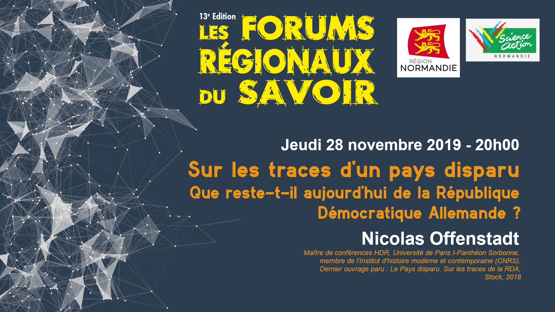 Nicolas Offenstadt* reviendra sur diverses questions qui se posent face à cette disparition. Comment les habitants se souviennent-ils de leur "petite République" ? Que sont devenus les objets marquants de leurs quotidiens ? Il présentera ses réflexions sur les mémoires et l'abandon afin de mieux comprendre les tensions politiques présentes à l'aune de ce qu'il reste de la RDA.