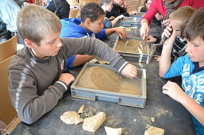 Des ateliers pédagogiques qui entraînent le jeune public à la découverte de l'archéologie, du métier d'archéologue et de ces différentes facettes : découvertes des méthodes de prospection (prospection aérienne et géophysique), mini-fouille dans des bacs de terre, tri et observation des matériaux et remontage de pots cassés.