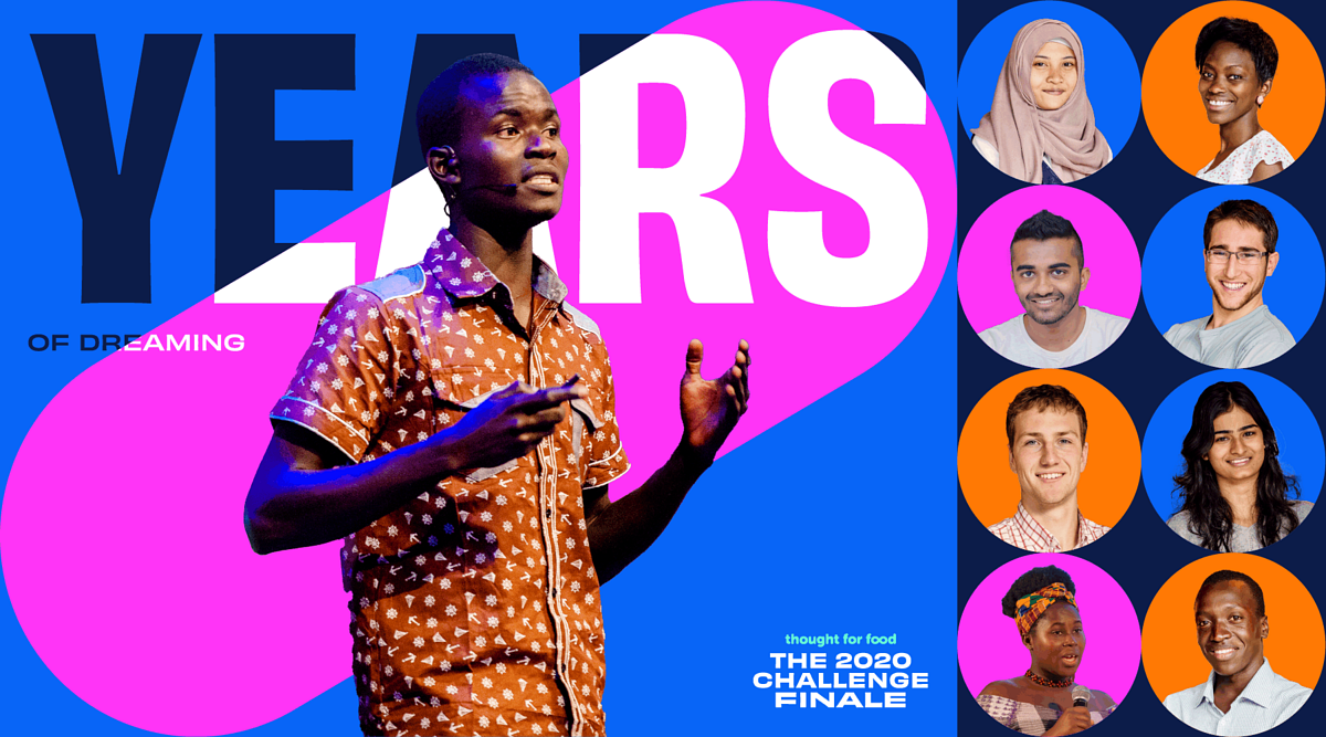 Thought For Food : the 2020 Challenge Finale est une émission en direct de 3 heures qui raconte l'histoire d'entrepreneurs motivés, en première ligne de la transformation du système alimentaire. Nous vous proposons de nouvelles solutions aux problèmes les plus urgents de l'alimentation et de l'agriculture, directement chez vous, partout sur la planète.