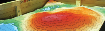 Selon la durée de l'animation, il est également possible de projeter un paysage composé d'une mosaïque de quatre types d'occupation des sols (forêt, prairies, cultures et bâtiments). Les effets de cette mosaïque paysagère sur le cheminement de l'eau sont alors abordés.