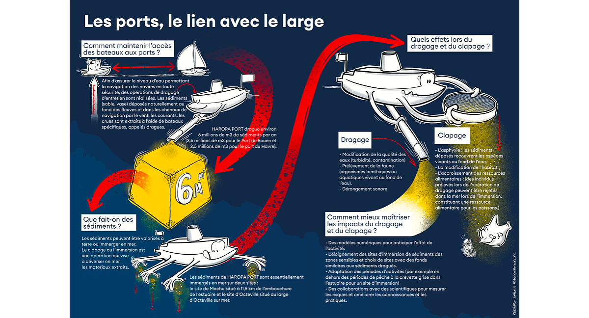 Afin de maintenir l’accès des bateaux aux ports, des sédiments sont retirés dans les chenaux de navigations, cette opération se nomme le dragage. Que deviennent ses sédiments ? Comment sont-ils valorisés, où sont-ils déposés et quels sont les impacts sur l’environnement ?