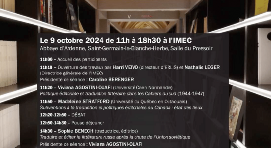 Journée d'étude ERLIS/Imec, mercredi 9 octobre 2024 de 11 h à 19 h Les archives des maisons d'édition et celles de traducteurs conservées à...